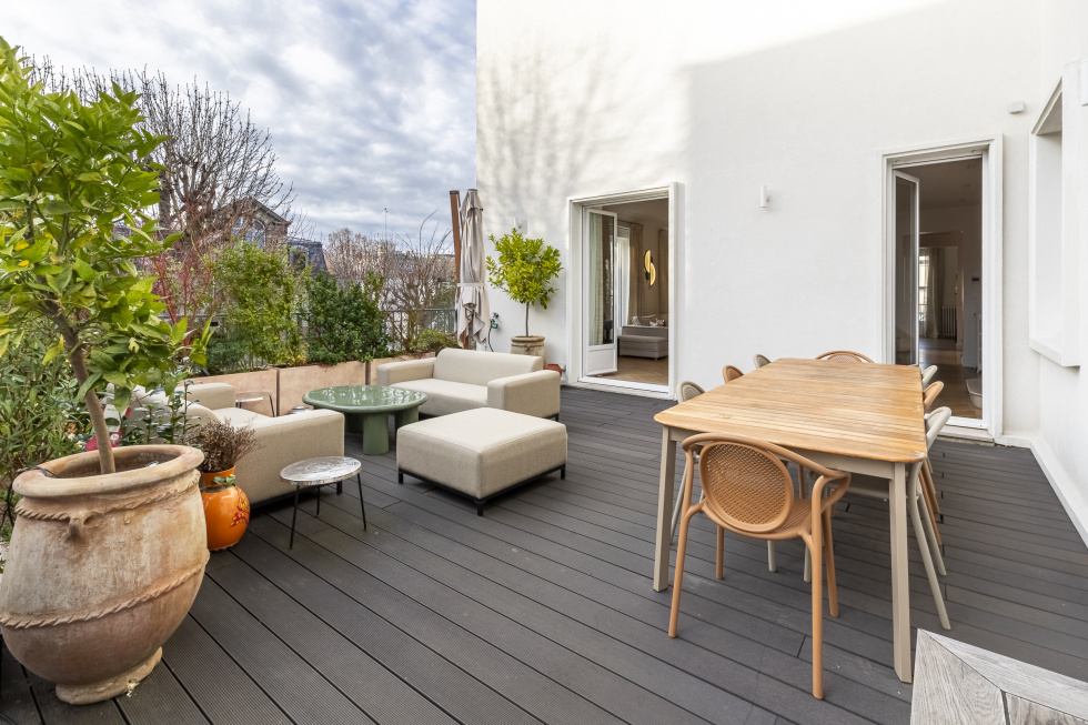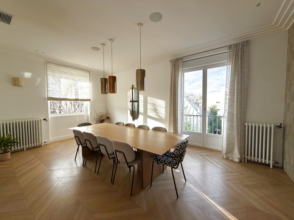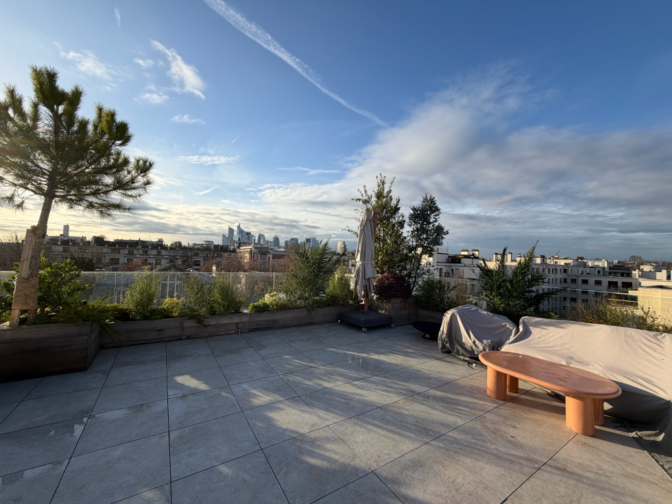 Neuilly Dans une voie Privée Dans un immeuble entièrement réhabilité de bon standing, nous proposons un magnifique duplex refait à neuf avec des prestations hauts de gammes en dernier étage - 250 m2 + une belle terrasse de plain pied de 45 m2 et une terrasse aménagée sur le toit de 100 m2 - Quadruple exposition - 2 parkings . L'appartement offre des magnifiques volumes ( avec 3m de HSP) un séjour de 65 m2 , grande cuisine de 21 m2 A l'étage 4 chambres (entre 22m2 et 15m2) 2 salles de bains et une salle d'eau.. Ravalement des façades, toiture entièrement révisée, changement de l’intégralité des huisseries avec volets électriques, ascenseur neuf (du sous/sol au 2ème étage), chaudière gaz neuve, rénovation complète de l’entrée de l’immeuble du sous-sol et des parties communes.
