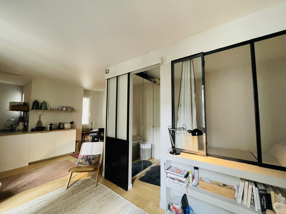 16ème, rue Cortambert, un 2 pièces traversant de 30 m² (29.68 carrez), situé au 3ème, étage en parfait état. Il se compose d'une pièce principale avec cuisine ouverte, une chambre en verrière avec dressing, une salle de douche avec WC. Baigné de lumière exposition ouest et très au calme. A deux pas des métro Trocadéro, rue de la Pompe, des commerces et des ecoles. Pas de procédure en cours. Honoraires inclus à charge acquéreur de 3.6% TTC