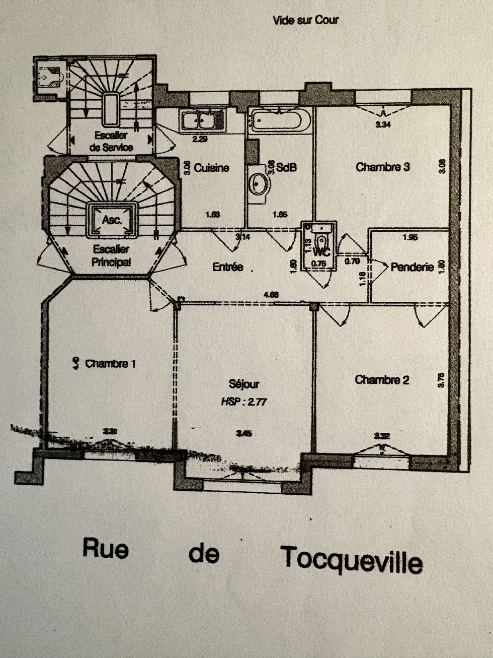 PARIS 17ème Rue de Tocqueville, au 3ème étage avec ascenseur d'un bel immeuble Art Déco (1925), beau 3/4 pièces de 76 m2. L'appartement comprend: Entrée , un beau double séjour exposé sud/ouest en façade sur la rue, une cuisine, 2 belles chambres (3 possibles), un dressing, un WC séparé, une salle de bains avec fenêtre. Excellent plan sans aucune perte de place, belle luminosité dans toutes les pièces. Cave et local vélos fermé dans l'immeuble. En option, vous pourrez acquérir en complément: une pièce de service au 7ème avec ascenseur, eau, et une grande fenêtre (60.000 €). Un parking à moins de 100 mètres (30.000 €). Exclusivité immobilière la Tour. Honoraires inclus 25.000 € TTC.