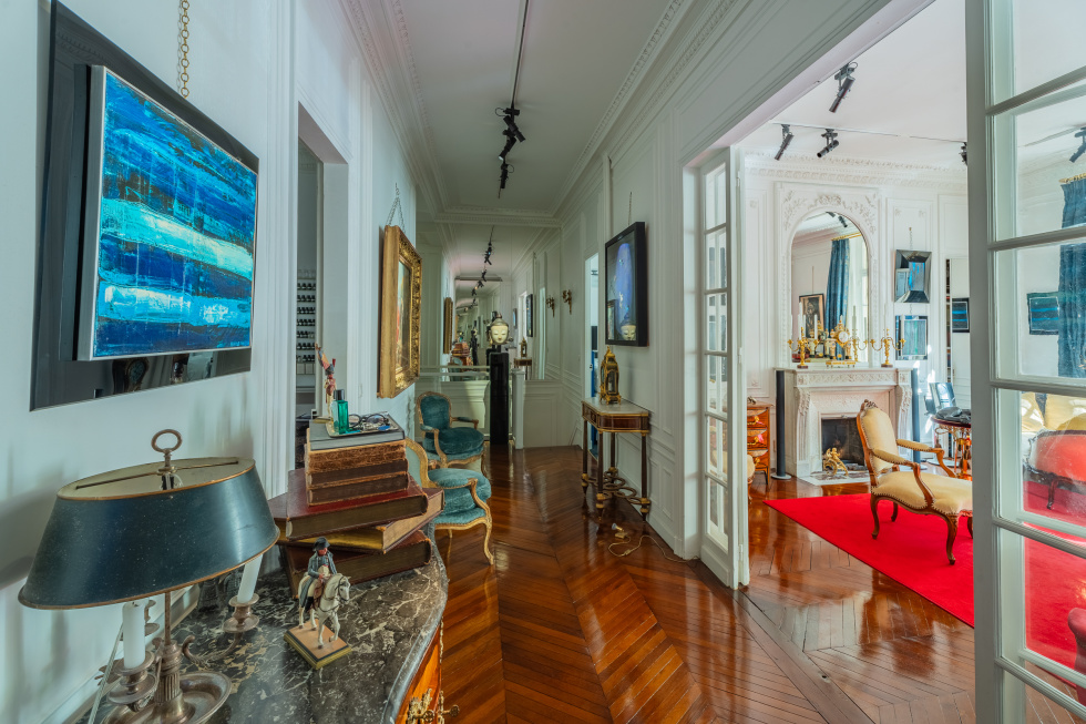 Dans un immeuble en pierre de taillle de 1890 aux belles parties communes, se trouve au rez de chaussée très surélevé un élégant appartement traversant de 150m² alliant savament l'ancien et le contemporain. Il se compose d'une galerie d'entrée, une cuisine toute équipée, salon de 30m², une salle à manger ou 3ème chambre, un grand bureau (poss de recréer une salle de douche), chambre parentale avec salle de douche attentante et toilettes, buanderie et toilettes d'invités. Par un escalier intérieur, on descend pour découvrir un espace spa avec sa baignoire balnéo. Possibilité de créer un hamman. En annexe une cave. L'appartement est en excellent état, rénové avec des matériaux de qualité. Belle hauteur sous plafond de 3m40. Il possède tout le raffiment d'un haussmanien avec de belles moulures, cheminées et parquet en point de Hongrie. Ensoleillé, calme. Sécurisé. Gardienne. A proximité du métro, RER, bus et des commerces de la rue Dufrenoy