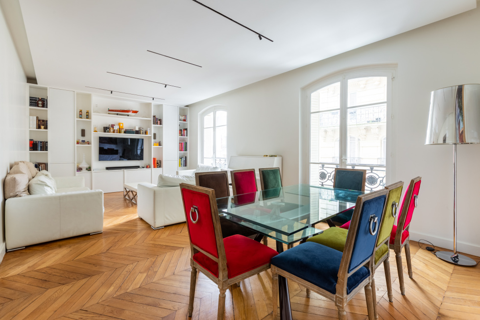 Dans une jolie rue calme proche de la rue de Passy, se trouve au 1er étage d'un bel immeuble en pierre en taille avec ascenseur, un appartement de 101.05m² avec 3 chambres. Il se compose d'une entrée, une cuisine dinatoire toute équipée, un double séjour de 31.85m², Une chambre parentale sur rue, deux chambres sur cour, une salle de douche avec toilettes, une petite salle de douche, Toilettes d'invités. Nombreux rangements. Proximité des métros, bus et écoles, sectorisation Janson. Aucune perte de place, excellent état. Travaux de qualités. Gardienne, jolies parties communes refaites.