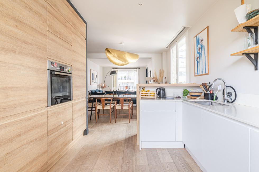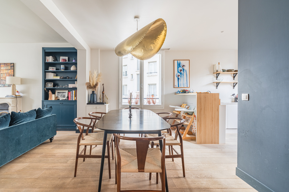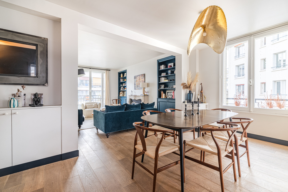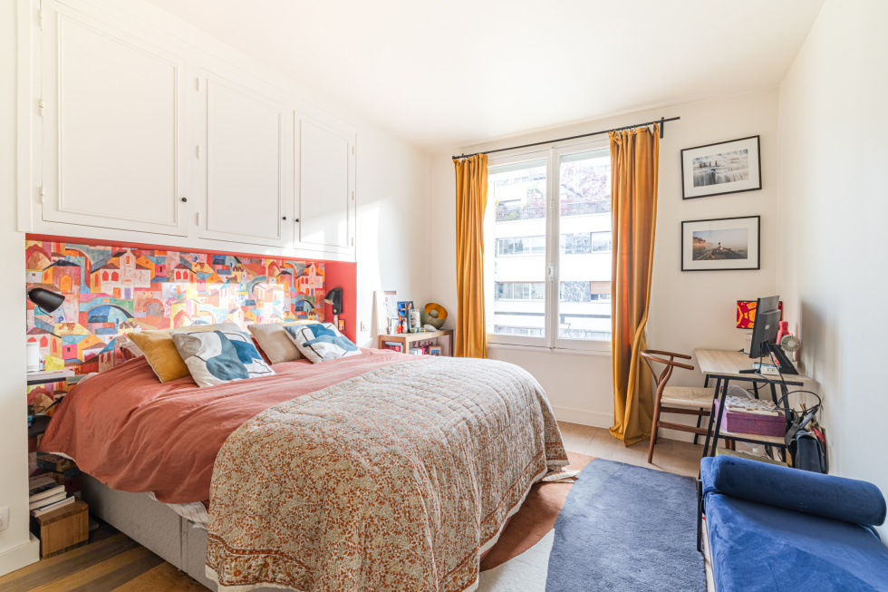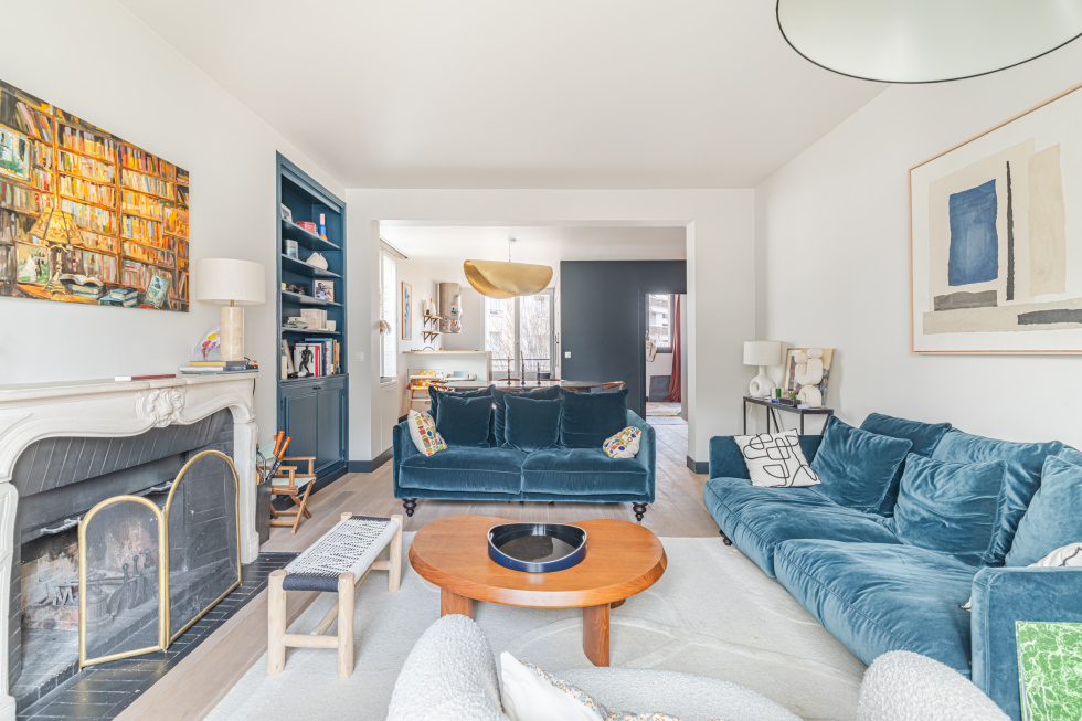 Jardins du Ranelagh/ Beauséjour, dans bel immeuble 1958 en Pierre de Taille, rare appartement de 4/5 pièces de 101 M2 au 5ème étage. Il se compose d'une entrée, un double séjour de 36m² avec cheminée, et, balcon, une cuisine semi-ouverte de 9 m2, 3 chambres dont une avec une douche, une grande salle de bains et 2 toilettes séparées. En annexe une cave. Bon plan sans aucune perte de place et, sans aucun travaux à prévoir. Bénéficiant d'une triple exposition, l'appartement est très ensoleillé et très calme. En supplément une chambre de service de 10,33 m2 au rez-de-chaussée louée. (Prix: 104.000 €), et, une grande place de parking au sous sol (52.000 €) Situation à 5 minutes à pied du métro Ranelagh et des commerces. Honoraires inclus 3.60% TTC.